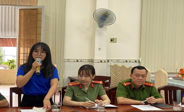Quang cảnh: Đại diện cho các bạn đoàn viên thanh niên xã Hòn Tre gửi gấm tâm tư, nguyện vọng, khó khăn, vướng mắc đến lãnh đạo tại hội nghị.