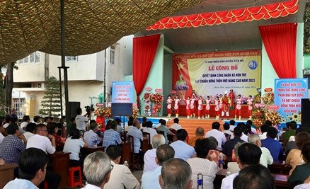 Quang cảnh: Lễ công bố Quyết định công nhận xã Hòn Tre đạt chuẩn nông thôn mới nâng cao năm 2023
