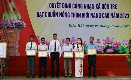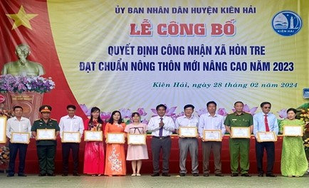 Dịp này, Chủ tịch UBND tỉnh Kiên Giang đã trao bằng công nhận xã Hòn Tre, huyện Kiên Hải đạt chuẩn nông thôn mới nâng cao năm 2023 và trao bằng khen cho 1 tập thể, 3 hộ gia đình có thành tích xuất sắc trong đóng góp kinh phí thực hiện phong trào thi đua “Kiên Giang chung sức xây dựng nông thôn mới”, giai đoạn 2021-2025; Tặng bằn khen cho 2 tập thể và 5 cá nhân có thành tích xuất sắc trong phong trào thi đua “Kiên Giang chung sức xây dựng nông thôn mới”, giai đoạn 2021-2025.