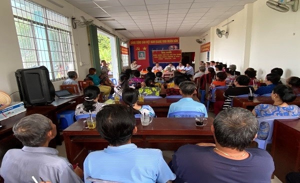 Quang cảnh: Đại biểu Hội đồng nhân dân tỉnh cùng tổ đại biểu Hội đồng nhân dân huyện, xã tiếp xúc cử tri tại ấp Thiên Tuế, xã Lại Sơn, huyện Kiên Hải.