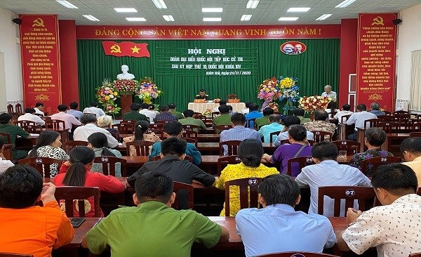 Tại buổi tiếp xúc bà con cử tri xã Hòn Tre được nghe ông Nguyễn Văn Luật, Phó Chủ nhiệm Ủy ban Tư pháp của Quốc Hội đơn vị số 1, thông báo kết quả nội dung chương trình kỳ họp thứ 10, Quốc Hội khóa XIV.