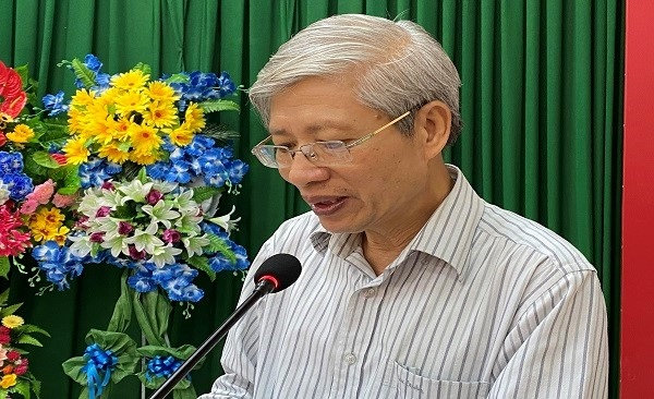 Quang cảnh: ông Nguyễn Văn Luật, Phó Chủ nhiệm Ủy ban Tư pháp của Quốc Hội, phát biểu tại buổi tiếp xúc cử tri.