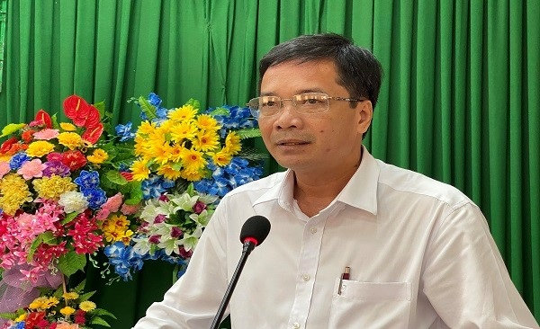 Quang cảnh: Đồng chí Huỳnh Thanh Bình, Phó Chủ tịch Ủy ban nhân dân huyện, phát biểu trả lời những ý kiến, kiến nghị của cử tri.