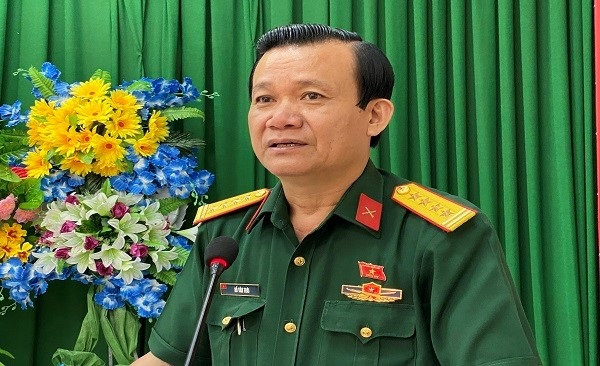 Quang cảnh: Đại tá Hồ Quang Thái, Phó Chủ nhiệm Chính trị, Quân khu 9. Đại biểu Quốc Hội (khóa XIV), trả lời những ý kiến, kiến nghị của cử tri.