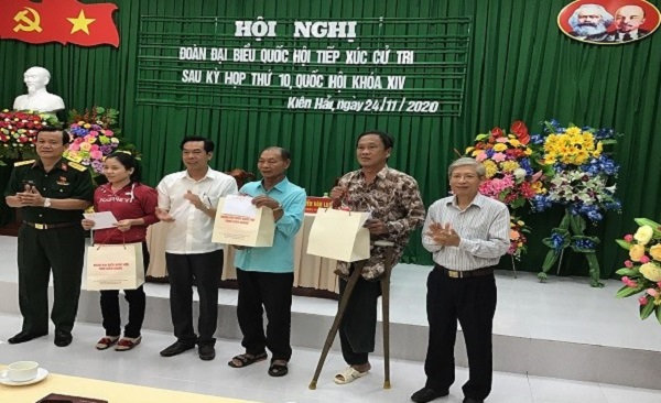 Theo đó, tại biểu tiếp xúc bà con cử tri xã Hòn Tre kiến nghị một số vấn đề an sinh - kinh tế - phát triển xã hội có liên quan gồm: Tiếp tục xem xét sửa đổi luật đất đai có lợi cho người dân, đặc biệt đối với người dân bị thu hồi đất hay là có đất nằm trong quy hoạch, làm sao xử lý được các quy hoạch treo, ảnh hưởng đến quyền lợi của người dân. Sớm cấp sổ đỏ cho bà con ở địa phương; Quan tâm hơn nữa đầu tư xây dựng cơ sở hạ tầng ở xã đảo để phục vụ phát triển kinh tế xã hội cho vùng sâu, vùng xa, biên giới hải đảo. Cử tri cũng kiến nghị cần sớm đầu tư kéo điện lưới quốc gia ra xã đảo An Sơn và Nam Du, để phục vụ điện phát triển du lịch, vì hiện nay hai đảo này vẫn còn sử dụng điện máy phát, nguồn điện không đủ cung cấp cho người dân, thường xuyên bị gián đọan do máy xuống cấp.