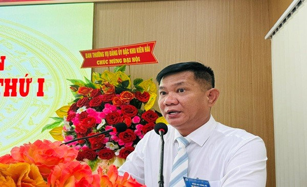 Quang cảnh: Đ/c Châu Hùng Kỳ, Phó Bí thư Đảng ủy, Chủ tịch UBND đặc khu Kiên Hải, phát biểu chỉ đạo tại Đại hội.