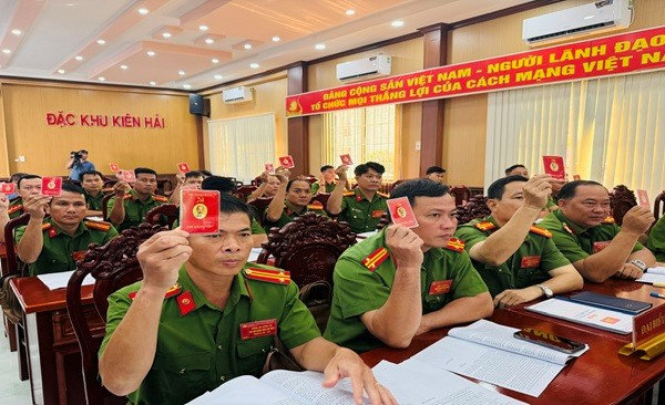 Quang cảnh: Đảng bộ Công an đặc khu Kiên Hải Đại hội Đảng viên lần thứ I, nhiệm kỳ 2025 - 2030.
