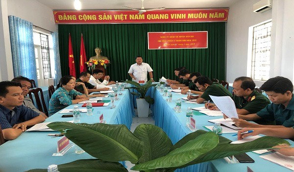 Ngay từ đầu năm 2019, Đảng ủy Ban Chỉ huy Quân sự huyện đã tham mưu Huyện ủy, Ủy ban nhân dân huyện lãnh đạo, chỉ đạo thực hiện chặt chẽ công tác quân sự, quốc phòng địa phương đúng quy định, giao chỉ tiêu tập huấn, huấn luyện dân quân tự vệ, dự bị động viên, bồi dưỡng kiến thức quốc phòng - an ninh cho các đối tượng đạt theo kế hoạch. Tổ chức lễ kết nạp mới và công nhận hoàn thành nghĩa vụ dân quân tự vệ đúng quy định. Công tác tuyển chọn và gọi công dân nhập ngũ đạt chỉ tiêu trên giao. Tổ chức hội nghị sơ kết 03 năm thực hiện Chỉ thị 05 của Bộ Chính trị gắn với 50 năm thực hiện di chúc Chủ tịch Hồ Chí Minh. Bên cạnh đó, thực hiện tốt phát động phong trào thi đua quyết thắng, thi đua trong huấn luyện và 04 đợt thi đua cao điểm, đột kích. Phong trào thi đua “Lực lượng vũ trang Kiên Hải chung sức xây dựng nông thôn mới”. Ngoài ra, tổ chức tốt lễ xuất quân thực hiện các hoạt động “Tết Quân - Dân” năm 2020, tại xã Hòn Tre. Về công tác bảo đảm hậu cần luôn được tăng cường kiểm tra vệ sinh, an toàn thực phẩm, chăm sóc tốt sức khoẻ cho bộ đội, làm tốt công tác phòng chống dịch bệnh, bảo đảm quân số khoẻ từ 98,5 % trở lên. Công tác tăng gia sản xuất và các hoạt động có thu đạt trên 200 triệu đồng, phát triển mô hình nuôi heo rừng.