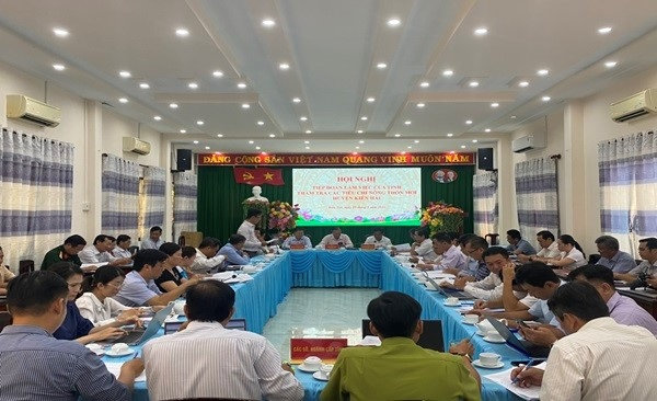 Quang cảnh: Đoàn công tác các sở, ngành tỉnh Thẩm tra các tiêu chí nông thôn mới.