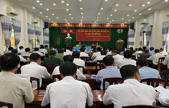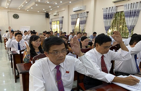 Quang cảnh: Kỳ họp lần thứ 12 Hội Đồng nhân dân huyện, khoá VII nhiệm kỳ 2016 - 2021.