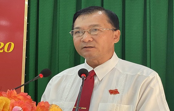 Quang cảnh: Đồng chí Trần Quốc Việt-Bí Thư Huyện ủy - Đại biểu HĐNĐ tỉnh, đơn vị Kiên Hải, báo cáo kết quả kỳ họp thứ 20 HĐND tỉnh.