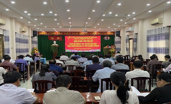 Đề thực hiện tốt hơn nữa trong thời gian tới Ban Thường vụ Huyện ủy Kiên Hải đề ra một số nhiệm vụ trọng tâm như: Tăng cường sự lãnh đạo, chỉ đạo của các cấp ủy đảng, chính quyền và các đoàn thể trong phát triển và nâng cao chất lượng nguồn nhân lực; tiếp tục đẩy mạnh công tác tuyên truyền, tạo sự chuyển biến mạnh mẽ trong nhận thức, hành động, trách nhiệm của mỗi cấp, mỗi ngành, mỗi cán bộ, công chức, viên chức về phát triển và nâng cao chất lượng nguồn nhân lực. Tiếp tục quán triệt thực hiện tốt các quan điểm chỉ đạo, mục tiêu cụ thể về phát triển nguồn nhân lực trong hệ thống chính trị của huyện đến năm 2025 và tầm nhìn đến năm 2030. Kịp thời điều chỉnh quy mô và cơ cấu đào tạo phù hợp với nhu cầu của huyện, khắc phục tình trạng mất cân đối, thiếu hụt nguồn nhân lực; chú trọng rà soát, bổ sung quy hoạch cán bộ, đảm bảo cho công tác cán bộ đi vào nề nếp. Phải gắn kết quy hoạch cán bộ với các khâu khác trong công tác cán bộ; việc đào tạo, luân chuyển, bổ nhiệm cán bộ phải căn cứ trên cơ sở quy hoạch đã được phê duyệt. Đồng thời, Chủ động phối hợp các cấp, các ngành trong công tác đào tạo, bồi dưỡng phát triển nguồn nhân lực. Các cấp ủy đảng, chính quyền, ban ngành, đoàn thể hàng năm phải xác định nhu cầu đào tạo, bồi dưỡng theo từng loại hình, chức danh, đối tượng, xây dựng kế hoạch, chủ động phối hợp, đề xuất cấp có thẩm quyền đưa cán bộ, công chức, viên chức đi đào tạo, bồi dưỡng đảm bảo tiêu chuẩn chức danh và vị trí công tác.