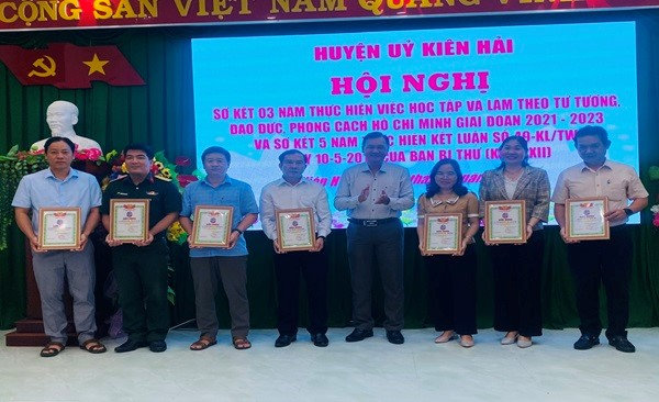 Dịp này, Ban Thường vụ Huyện ủy Kiên Hải đã biểu dương 7 tập thể và 9 cá nhân đạt thành tích tiêu biểu trong học tập và làm theo tư tưởng, đạo đức, phong cách Hồ Chí Minh giai đoạn 2021-2023./.