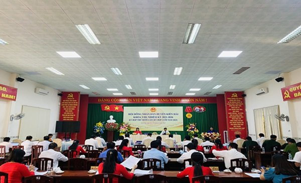 Quang cảnh: Hội đồng nhân dân huyện Kiên Hải khóa VIII, nhiệm kỳ 2021 - 2026 khai mạc kỳ họp lần thứ mười lăm.