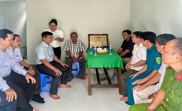 Quang cảnh: Đ/c Châu Hùng Kỳ, Phó Bí thư Đảng ủy - Chủ tịch UBND đặc khu trao nhà cho ông Huỳnh Văn Luân ngụ tổ 4, ấp Bãi Bấc, đặc khu Kiên Hải