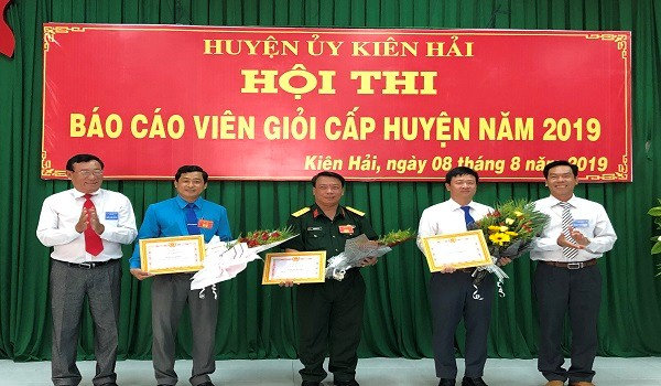 Kết thúc Hội thi, Ban tổ chức đã trao giải nhất, nhì, bà và giải khuyến khích cho các thí sinh có thành tích xuất sắc trong Hội thi báo cáo viên giỏi lần thứ I năm 2019. Qua đó, Huyện ủy Kiên Hải sẽ chọn cử 02 báo cáo viên xuất sắc tham dự Hội thi báo cáo viên cấp tỉnh năm 2019./.