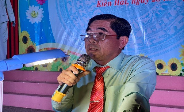 Phát biểu Khai mạc Hội thi đồng chí Nguyễn Hoàng Giang, Trưởng Ban tuyên giáo Huyện ủy - Giám đốc Trung tâm Chính trị huyện Kiên Hải, Trưởng Ban tổ chức Hội thi nói: “Tôi mong rằng các thí sinh phải thật sự đoàn kết, sáng tạo, thể hiện tinh thần trách nhiệm, thể hiện tính tiên phong gương mẫu của người cán bộ, đảng viên, tích cực tham gia nhiệt tình, đầy đủ các nội dung; thực hiện tốt các quy định của Ban Tổ chức Hội thi đề ra; đề nghị Ban giám khảo Hội thi cần có sự công tâm, khách quan, trung thực giúp cho Ban tổ chức chọn ra những đội thi xuất sắc để trao giải, góp phần vào sự thành công của Hội thi”.