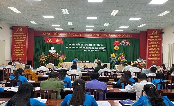 Quang cảnh: Hội Đồng nhân dân huyện Kiên Hải tổ chức kỳ họp lần thứ 8 Hội Đồng nhân dân huyện, khoá VIII nhiệm kỳ 2021 - 2026.