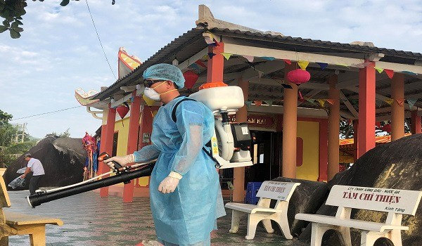 Quang cảnh: Phun thuốc Cloramin B, thuốc diệt muỗi xung quanh khuôn viên khu di tích và khu dân cư