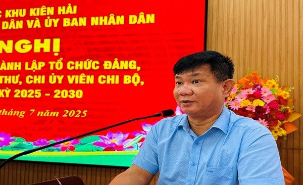 Phát biểu chỉ đạo tại Hội nghị đồng chí Châu Hồng Kỳ, Phó Bí thư Đảng ủy, Chủ tịch UBND đặc khu Kiên Hải, Bí thư Đảng ủy HĐND - UBND đề nghị Bí thư các Chi bộ mới thành lập nhanh chóng ổn định tổ chức, sinh hoạt đúng quy định. Xây dựng quy chế làm việc, phân công nhiệm vụ cụ thể cho từng đảng viên, từng cấp ủy viên, xây dựng kế hoạch kiểm tra, giám sát và kế hoạch phát triển đảng viên mới. Đẩy mạng công tác chính trị tư tưởng, giữ vững nguyên tắc tập trung dân chủ, đoàn kết nội bộ, phát huy tinh thần tự phê bình và phê bình. Tăng cường công tác kiểm tra, giám sát để kịp thời để điều chỉnh uốn nắn đối với các đảng viên có biểu hiện sai lệch. Bám sát nhiệm vụ chính trị của từng đơn vị, triển khai thực hiện Nghị quyết của Chi bộ gắn với nhiệm vụ chuyên môn, phát huy vai trò tuyên phong, gương mẫu của Đảng viên trong mọi lĩnh vực công tác. Đồng thời, tăng cường công tác phát triển đảng viên mới, đặc biệt chú trọng phát triển bồi dưỡng quần chúng ưu tú, nhất là trong lực lượng cán bộ trẻ, có phẩm chất đạo đức, năng lực công tác. Ngoài ra, sớm chuẩn bị công tác Đại hội đảng ủy cơ sở trong tháng 7 năm 2025...”.