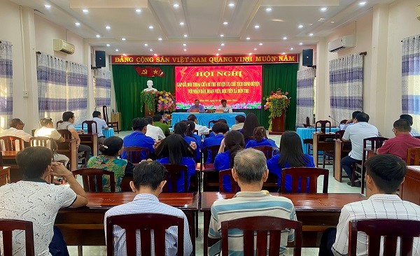 Quang cảnh: Hội nghị gặp gỡ, đối thoại giữa người đứng đầucấp ủy Đảng, chính quyền với đoàn viên, hội viên và nhân dân trên địa bàn xã Hòn Tre
