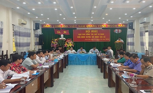 Quang cảnh: Hội nghị giao ban công tác quý III năm 2022 giữa Hội đồng nhân dân huyện với Hội đồng nhân dân các xã