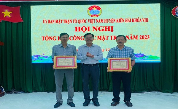 Nhân dịp này, Uỷ ban Mật trận Tổ quốc Việt Nam tỉnh Kiên Giang đã tặng Bằng khen cho 2 tập thể và 01 cá nhân đã có thành tích xuất sắc trong thực hiện Chương trình mục tiêu quốc gia xây dựng nông mới năm 2023. Ủy ban MTTQ Việt Nam huyện cũng tặng giấy khen cho 02 tập thể có thánh tích xuất sắc trong phong trào thi đua hệ thống Mặt trận huyện Kiên Hải năm 2023./.
