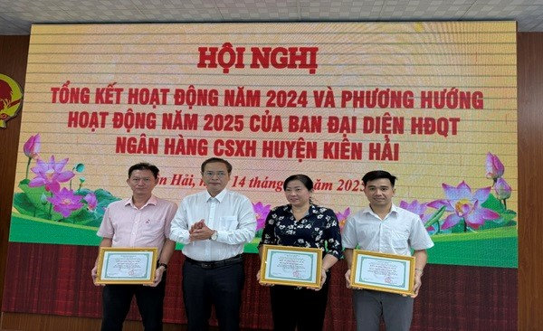 Dịp này, Ban Đại diện Hội đồng quản trị Ngân hàng Chính sách xã hội huyện Kiên Hải, biểu dương khen thưởng cho 05 tập thể và 18 cá nhân đã có thành tích xuất sắc và có nhiều đóng góp tích cực, có hiệu quả thiết thực trong hoạt động của NHCSXH huyện năm 2024./.