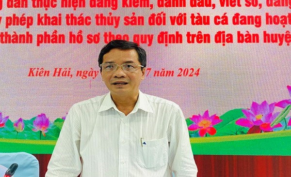 Phát biểu kết luận tại Hội nghị đồng chí Huỳnh Thanh Bình, Ủy vên Ban Thường vụ Huyện ủy, Phó Chủ tịch UBND huyện Kiên Hải; “Yêu cầu Phòng Nông nghiệp và Phát triển nông thôn huyện, UBND các xã, ấp khảo sát tàu cá và hướng dẫn các tổ chức, cá nhân có tàu cá trong danh sách đã được UBND tỉnh công bố và thông báo rộng rải trên các phương tiện thông tin đại chúng. Tập trung tuyên truyền, phổ biến chủ trương cho Đăng kiểm, đánh dấu, viết số, Đăng ký tàu cá và cấp Giấy phép khai thác thủy sản đến chủ tàu biết để thực hiện, hướng dẫn, xác định Tờ khai đăng ký tàu cá”.