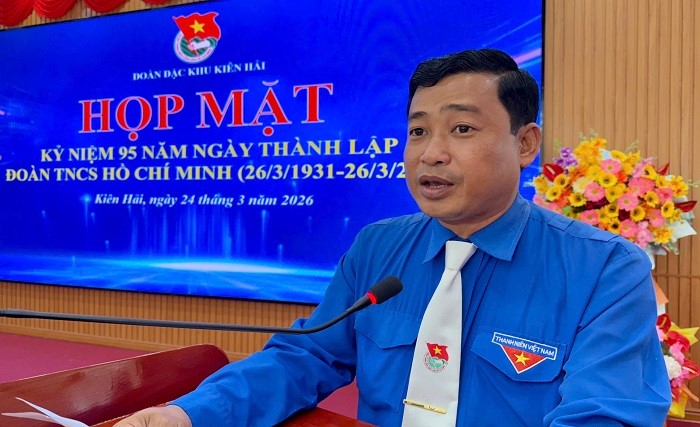 Đoàn đặc khu Kiên Hải tổ chức họp mặt kỷ niệm 95 năm ngày thành lập Đoàn Thanh niên Cộng sản Hồ Chí Minh (26/3/1931 - 26/3/2026), gắn với tuyên dương học sinh 3 tốt, đảng viên trẻ, cán bộ đoàn, đoàn viên trẻ tiêu biểu và thanh niên tiên tiến làm theo lời Bác năm 2026. Đến dự có đồng chí Trần Văn Đoàn, Ủy viên Ban Thường vụ Đảng ủy - Chủ tịch Ủy ban MTTQ Việt Nam đặc khu Kiên Hải; Các đồng chí lãnh đạo Đoàn Kiên Hải qua các thời kỳ; Đại diện lãnh đạo các Ban, Ngành, Đoàn thể đặc khu, cùng hơn 50 đoàn viên, thanh niên, lực lượng vũ trang trên địa bàn đặc khu tham dự.