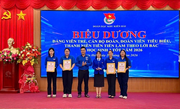 Dịp này Ban thường vụ Đoàn đặc khu Kiên Hải đã biểu dương cho 04 cá nhân đạt danh hiệu cán bộ đoàn tiêu biểu; biểu dương 05 cá nhân đảng viên trẻ tiêu biểu, biểu dương 03 cá nhân đoàn viên trẻ tiêu biểu; biểu dương 05 các cá nhân thanh niên tiên tiến làm theo lời Bác và biểu dương 03 cá nhân đạt danh hiệu học sinh 3 tốt./.