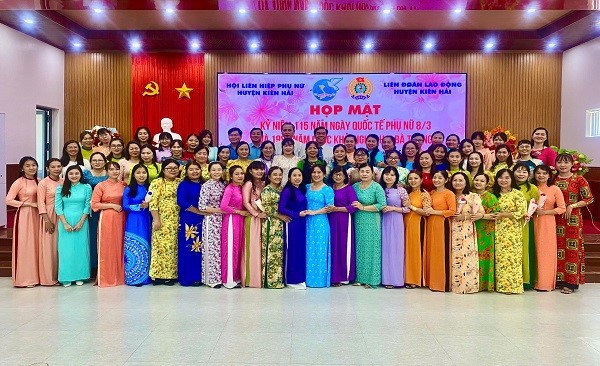 Tại buổi họp mặt, các đại biểu đã cùng nhau ôn lại ý nghĩa lịch sử 115 năm ngày Quốc tế Phụ nữ 8-3, truyền thống hào hùng của cuộc khởi nghĩa Hai Bà Trưng và những chiến công anh dũng của Phụ nữ Việt Nam. Đồng thời, tôn vinh những giá trị truyền thống tốt đẹp, tôn vinh những người phụ nữ Việt Nam trong thời kỳ mới, Khẳng định vai trò, vị trí của người phụ nữ trong sự nghiệp xây dựng và phát triển đất nước. Kế thừa và phát huy truyền thống tốt đẹp đó, trong thời gian qua Hội LHPN huyện Kiên Hải đã không ngừng đổi mới nội dung, phương thức hoạt động, xây dựng các mô hình thiết thực, hiệu quả, thu hút đông đảo các tầng lớp chị em phụ nữ tham gia như: Phong trào thi đua “Xây dựng người phụ nữ Việt Nam thời đại mới”, phong trào Hai giỏi “Giỏi việc nước đảm việc nhà” gắn với “Học tập và làm theo tư tưởng, đạo đức, phong cách Hồ Chí Minh”; thực hiện Cuộc vận động: “Xây dựng gia đình 5 không, 3 sạch” góp phần vun đắp giá trị gia đình Việt Nam, các mô hình, tổ hợp tác, hợp tác xã, “Chi hội phụ nữ 3 sạch” góp phần tham gia xây dựng nông thôn mới…Qua đó các cấp hội biểu dương nhân rộng nhiều gương phụ nữ tiêu biểu.