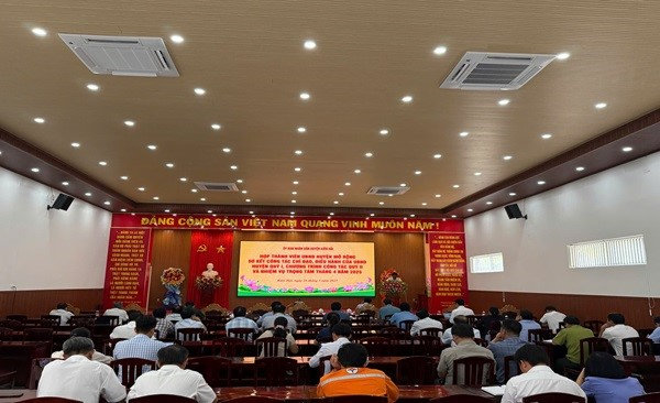 Quang cảnh: họp thành viên UBND huyện mở rộng sơ kết công tác chỉ đạo, điều hành của UBND huyện quí I và chương trình công tác quí II năm 2025