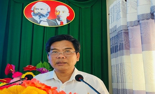 Quang cảnh: Đồng chí Nguyễn Quốc Tuấn, Phó Bí thư Huyện ủy, Chủ tịch Ủy ban nhân dân huyện Kiên Hải, phát biểu chỉ đạo tại cuộc họp.