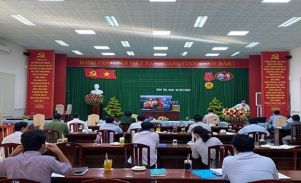 Quang cảnh: Cuộc họp thành viên Ủy ban nhân dân huyện Kiên Hải tháng 2 năm 2022.