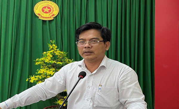 Quang cảnh: Đồng chí Nguyễn Quốc Tuấn, Chủ tịch UBND huyện Kiên Hải phát biểu chỉ đạo tại cuộc họp.
