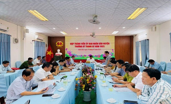 Quang cảnh: Họp thành viên Ủy ban nhân dân huyện về báo cáo chỉ đạo điều hành tình hình kinh tế - xã hội tháng 2 năm 2025.