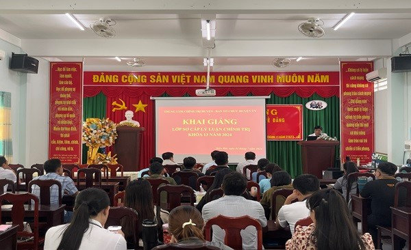 Quang cảnh: Trung tâm Chính trị huyện phối hợp với Ban tổ chức Huyện Ủy Kiên Hải, tổ chức khai giảng lớp sơ cấp lý luận chính trị K13 năm 2024.