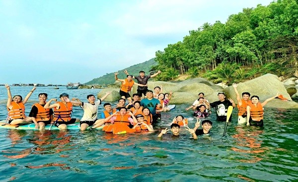 Quang cảnh: Du khách tham quan tấm biển, chèo sup tại Lại Sơn, đặc khu Kiên Hải.