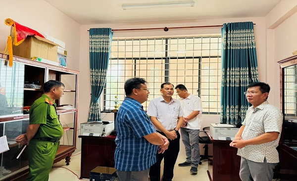 Quang cảnh: Lãnh đạo đoàn trao đổi công việc tổ phụ trách địa bàn.