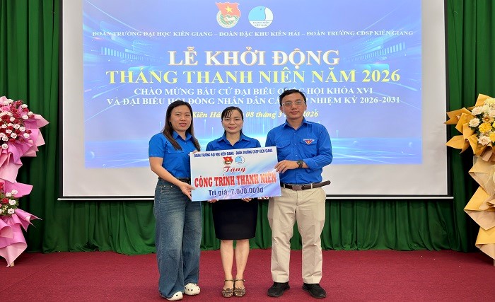 Nhân dịp này, Đoàn Trường Đại học Kiên Giang và Đoàn Trường Cao đẳng Sư phạm Kiên Giang trao tặng Đoàn đặc khu Kiên Hải 01 công trình thanh niên trị giá 7 triệu đồng.