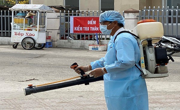 Quang cảnh: Phun thuốc khử trùng ở các khu dân cư trên địa bàn xã Lại Sơn