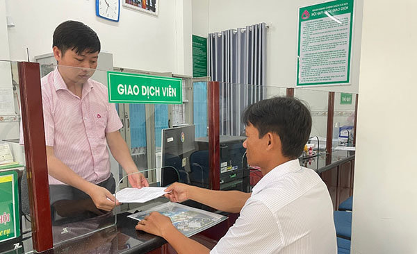 Ông Bùi Ngọc Thắm, Tổ Kế toán - Ngân quỹ Ngân hàng chính sách xã hội huyện Kiên Hải đang thực hiện các thủ tục giải ngân cho vay mua nhà ở xã hội