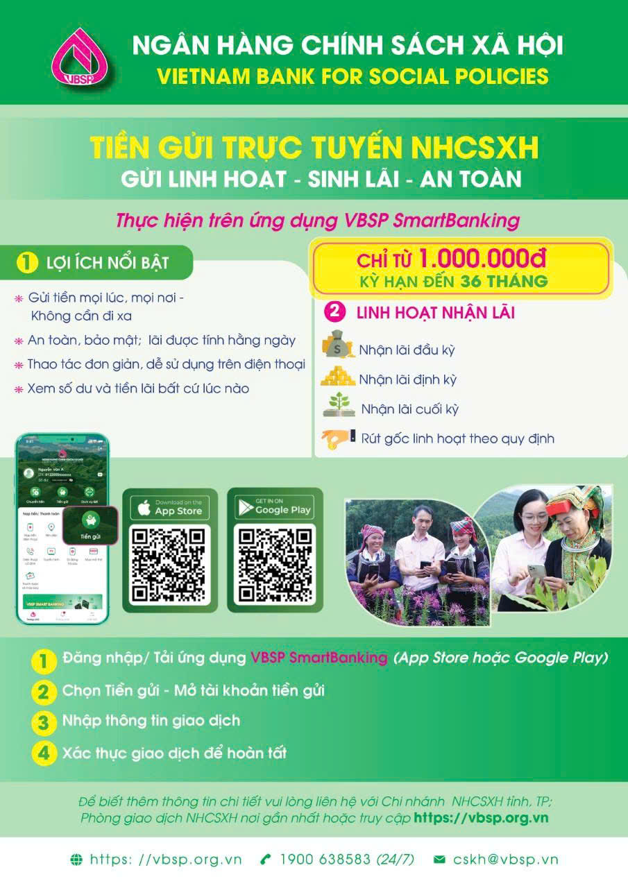 Chỉ từ 1.000.000đ, gửi tiết kiệm linh hoạt đến 36 tháng trên ứng dụng VBSP SmartBanking.