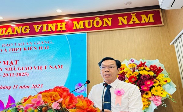 Đến dự phát biểu chỉ đạo tại buổi Họp mặt Ngày nhà giáo Việt Nam 20 - 11 đồng chí Đoàn Hồng Duy, Phó Bí thư Thường trực Đảng ủy, Chủ tịch HĐND đặc khu Kiên Hải đã biểu dương, ghi nhận và trân trọng những đóng góp to lớn, những thành tích của các thầy cô giáo, Trường THCS & THPT Kiên Hải đã đạt được trong thời gian qua, đồng thời đồng chí cũng mong muốn lãnh đạo nhà trường và các thầy giáo, cô giáo cần phải tập trung thực hiện tốt một nhiệm vụ trọng tâm trong thời gian tới đồng chí nói; “Thực hiện tốt việc đổi mới phương pháp dạy và học; bồi dưỡng kỹ năng ứng dụng công nghệ cho giáo viên trong công tác giảng dạy; tạo điều kiện cho giáo viên tham gia các lớp tập huấn, bồi dưỡng chuyên môn từng bước đáp ứng yêu cầu nhiệm vụ trong tình hình mới. Tập trung thực hiện tốt các nhiệm vụ cơ bản năm học 2025-2026. Trọng tâm: Thực hiện có hiệu quả các phong trào thi đua của ngành; tiếp tục thực hiện đổi mới chương trình giáo dục phổ thông và công tác phổ cập giáo dục; nâng cao chất lượng dạy và học, bồi dưỡng nâng lên tỷ lệ học sinh khá, giỏi, chú trọng rèn luyện kỹ năng sống, khát vọng, đạo đức cho học sinh; xây dựng môi trường học đường an toàn - thân thiện - hạnh phúc; tăng cường và đổi mới công tác quản lý và ứng dụng công nghệ thông tin trong dạy học, đẩy nhanh công tác chuyển đổi số trong ngành giáo dục. Đồng thời, Đảng ủy đặc khu sẽ luôn đồng hành, tạo mọi điều kiện thuận lợi để sự nghiệp giáo dục đặc khu Kiên Hải nói chung và trường Trường THCS & THPT Kiên Hải nói riêng ngày càng đi lên: quan tâm xây dựng đội ngũ, đầu tư cơ sở vật chất, tăng cường công tác xã hội hóa, huy động sức mạnh các tổ chức chính trị - xã hội và nhân dân cùng chăm lo cho nhà trường. Đồng thời, Đảng ủy mong rằng tập thể lãnh đạo nhà trường cùng mỗi thầy cô tiếp tục giữ vững tinh thần đoàn kết, trách nhiệm, nêu cao đạo đức nghề nghiệp, đổi mới sáng tạo, thực hiện tốt nhiệm vụ năm học mới, góp phần xây dựng nền giáo dục phát triển bền vững”.