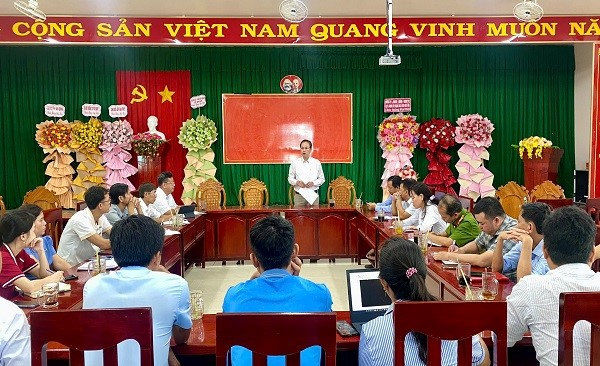 Quang cảnh: Đoàn công tác Uỷ ban nhân dân đặc khu Kiên Hải làm việc với Tổ phụ trách địa bàn An Sơn