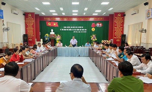 Quang cảnh: Đoàn lãnh đạo UBND huyện Kiên Hải làm việc với UBND xã Hòn Tre